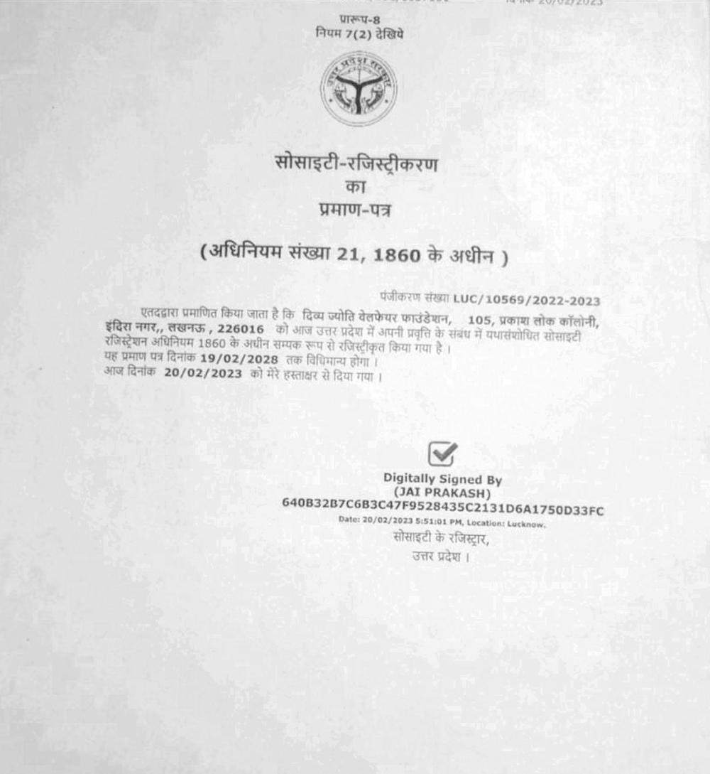 Certificate of Sciety Registration